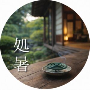 「処」という漢字には「落ち着く」、暑さが和らぐという意味があります