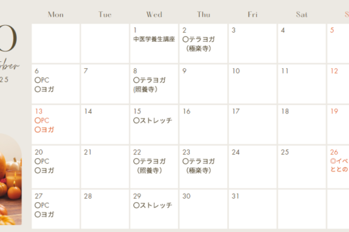 2025年10月のレッスンスケジュール